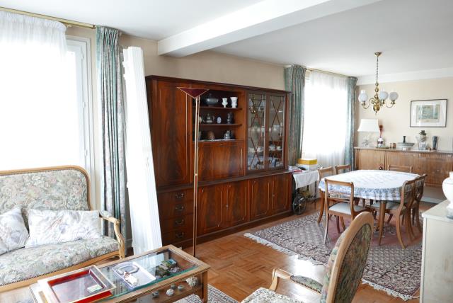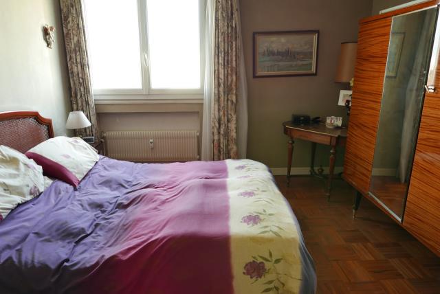 Dans un immeuble avec ascenseur, bel appartement type 5 (env 102 m2). Entrée, séjour double, cuisine, 3 chambres, salle de bains, 2 wc, débarras. Nombreux rangements ? Balcon ? Cave- Possibilité d'acheter un garage Box. Très lumineux, traversant, vue dégagée.