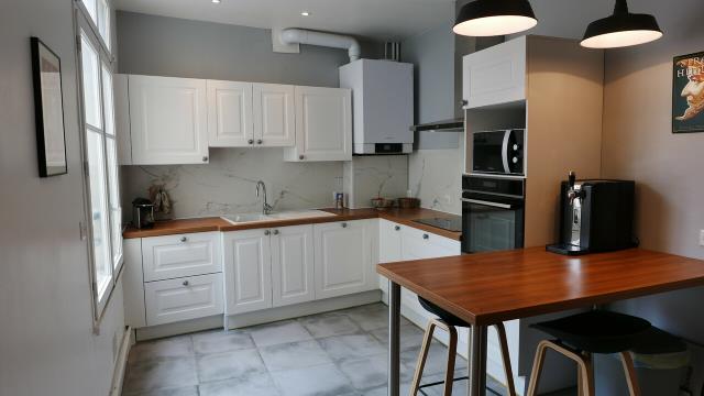 Exclusivité - Hyper centre / Libergier. Dans un bel immeuble ancien, magnifique appartement rénové avec goût, offrant spacieuse entrée, séjour, salle à manger, cuisine équipée, salle de bains, wc. Coin lingerie - Nombreux rangements - Cave - Local Vélos/poussettes - Charme de l'ancien préservé - Vue dégagée - Aucun travaux à prévoir.