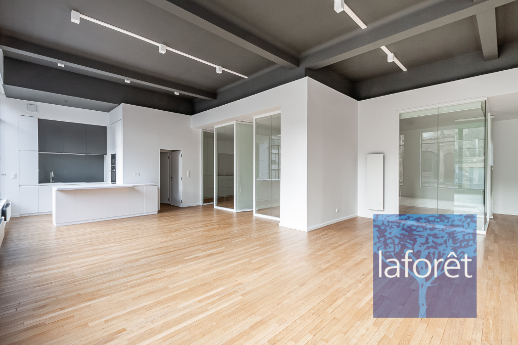 REIMS - HYPER CENTRE VILLE - EXCEPTIONNEL Dans immeuble des années 50, appartement type loft entièrement rénové par architecte, très lumineux, offrant des prestations de qualité, composé d'une vaste entrée avec rangement intégré, un séjour de 53 m² avec cuisine ouverte équipée, de 3 chambres avec dressing intégré, de 2 salles d'eau avec douche, d'un cellier et d'un WC séparé.