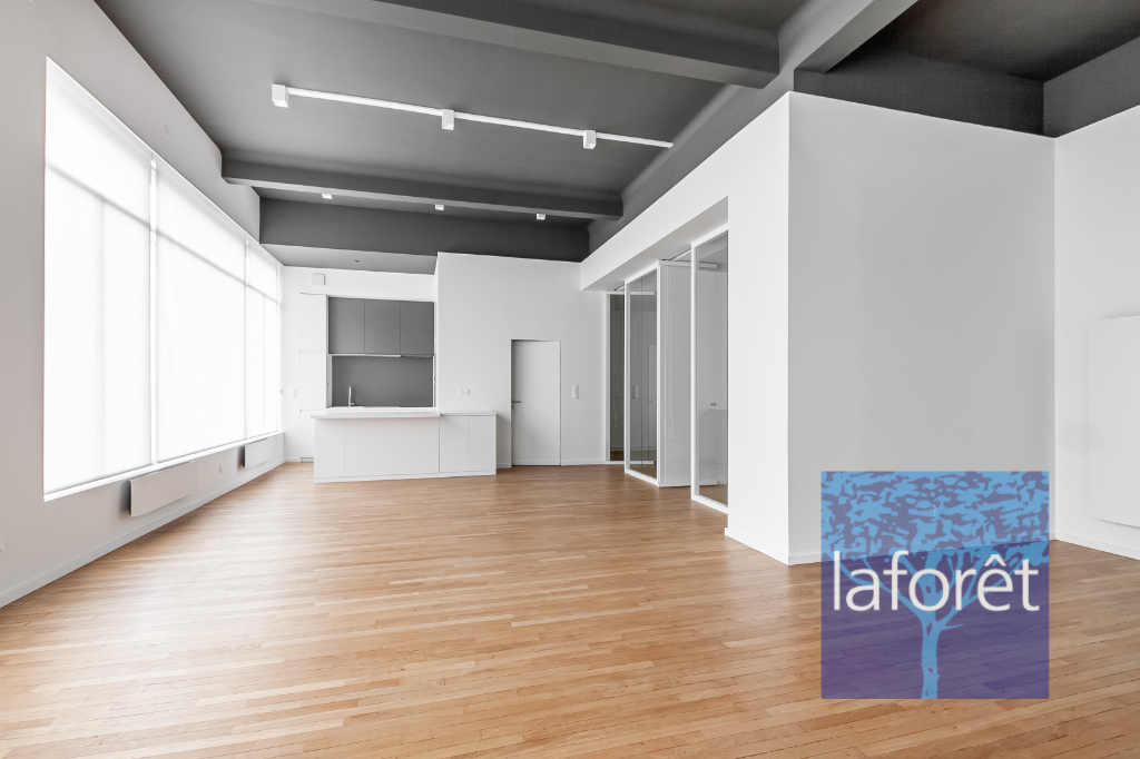 REIMS - HYPER CENTRE VILLE - EXCEPTIONNEL Dans immeuble des années 50, appartement type loft entièrement rénové par architecte, très lumineux, offrant des prestations de qualité, composé d'une vaste entrée avec rangement intégré, un séjour de 53 m² avec cuisine ouverte équipée, de 3 chambres avec dressing intégré, de 2 salles d'eau avec douche, d'un cellier et d'un WC séparé.