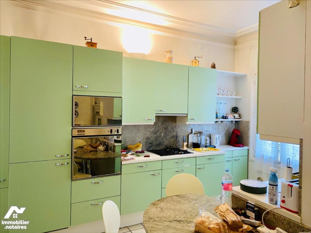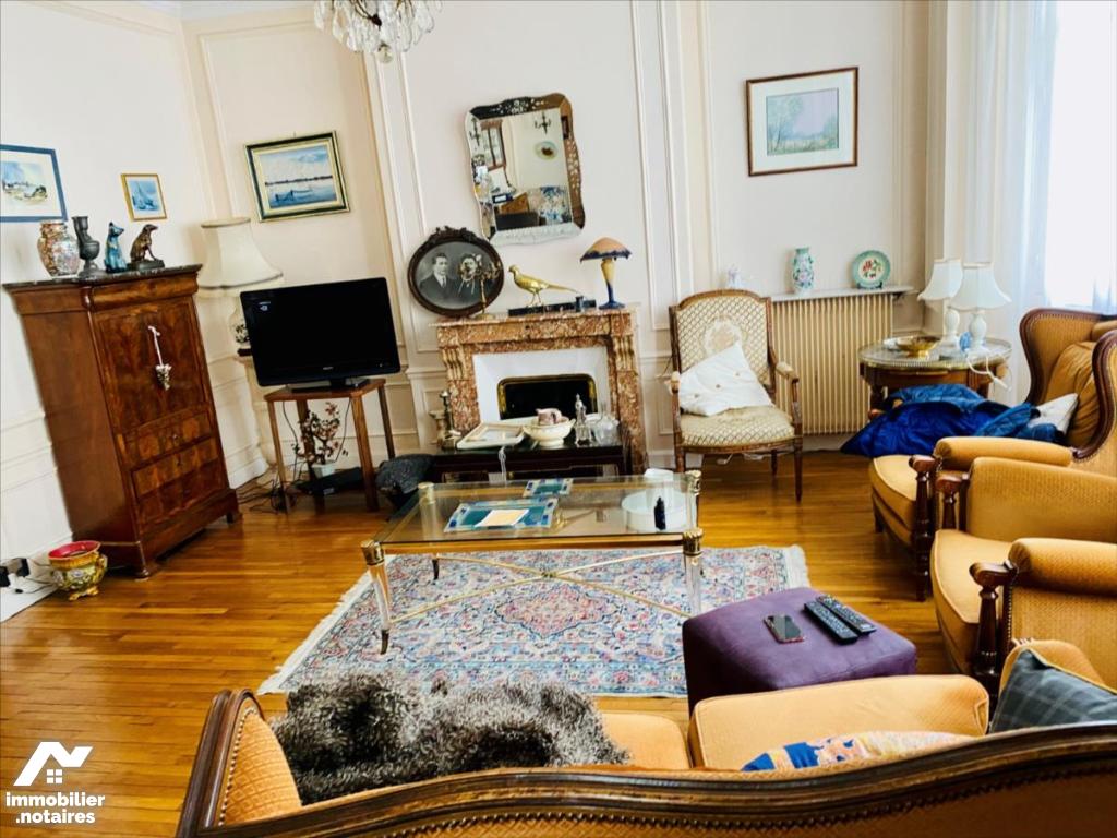 HYPER CENTRE - appartement ancien en pierre des années 1923 de type 5 d'une superficie habitable d'environ 130 m², situé au 3 ème étage avec ascenseur, se composant :Entrée, grande cuisine et arrière cuisine, grande pièce à vivre d'environ 36 m², trois chambres, deux WC séparés, une salle de douche, une salle de bains et placards. Deux caves. Chauffage au gaz individuel. DPE vierge