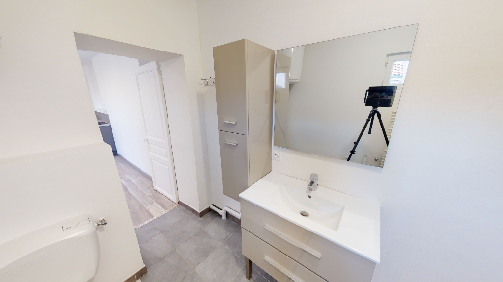 Rénové intégralement, l'appartement se compose d'une pièce de vie avec cuisine aménagée et équipée (four, plaque ...), d'une chambre avec rangements et d'une salle d'eau avec douche à l'italienne et WC.