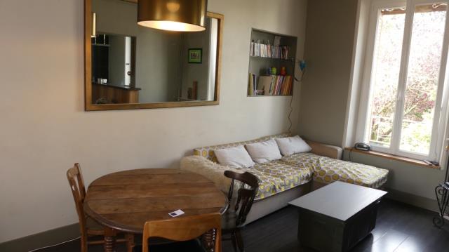 Appartement T2 bis traversant au 1 er étage d'un immeuble ancien bien entretenu. Entrée avec placard, séjour et cuisine semi ouverte, deux chambres ou une chambre et un bureau, salle de douche et wc. Une cave. Faibles charges de copropriété.