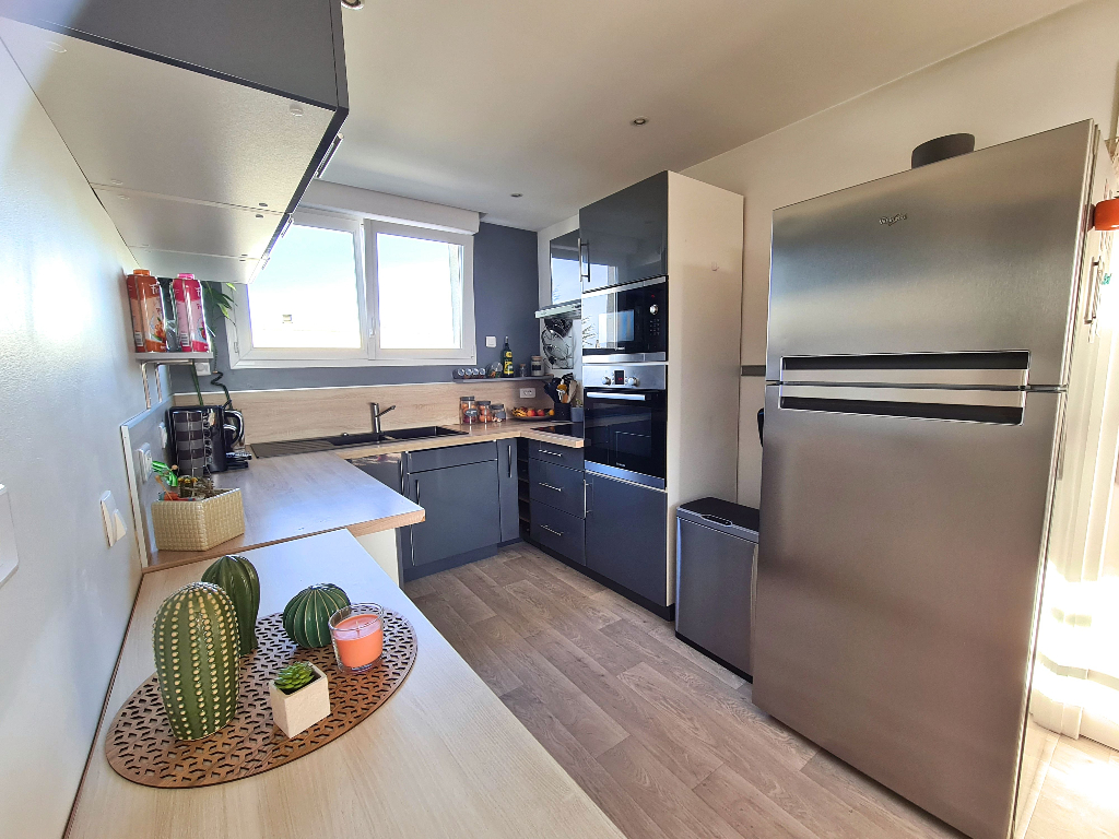 EXCLUSIVITE - Secteur Europe, proche transports en communs, commerces et écoles, appartement entièrement rénové composé d'une entrée, cuisine équipée ouverte sur séjour, 2 chambres, salle de bains avec baignoire et wc, petit balcon, cave.