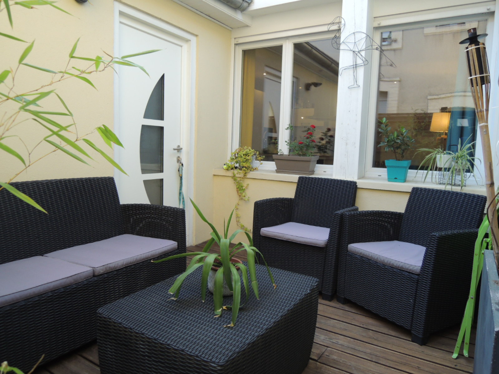 Dans une petite résidence des années 20 en copropriété, appartement à vendre sur deux étages. Il s'organise comme suit : Au RDC une entrée desservant une pièce à vivre avec cuisine, un débarras et des toilettes. Au 1 er étage un palier donnant sur une chambre avec dressing et une salle d'eau. Au second une grande chambre. Pour profiter des beaux jours, cet appartement dispose aussi d'une terrasse.