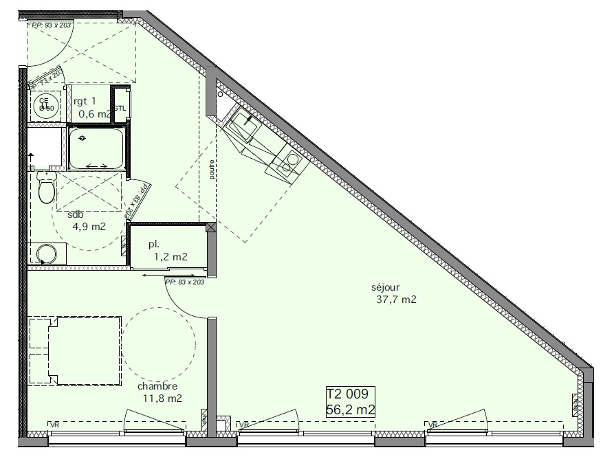 Vente appartement de 56m2 (2 pièces) à Reims