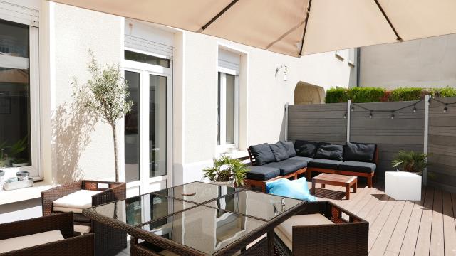 Exclusivité - Reims secteur Moissons / Saint André. Dans un immeuble ancien, bel appartement offrant entrée, séjour avec cuisine ouverte, 2 chambres , salle de bains, wc. Rangements - Terrasse SUD 35m2 - Très bon état- Possibilité achat parking dans la copropriété Aucun travaux à prévoir - Calme et Très lumineux.