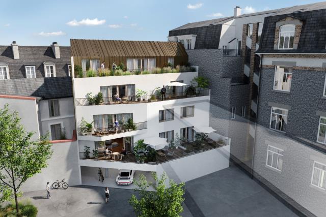 Appartement moderne et fonctionnel de type 3 et d'une surface d'environ 65 m², offrant 2 chambres, salon séjour de 22 m² ouvert sur la cuisine, salle de bains, buanderie, rangements. Terrasse d'environ 29 m² jouxtant le séjour offrant une vue magnifique sur la Cathédrale. Achévement des travaux prévu au premier trimestre 2023. Éligible loi Pinel. Copropriété de 6 lots principaux, charges annuelles à définir. Copropriété en cours de création.
