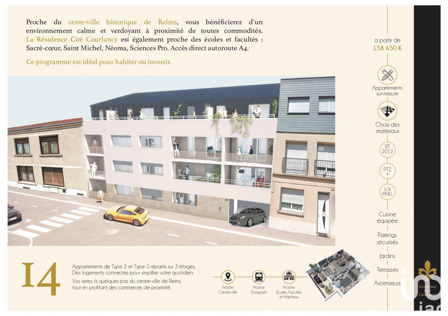 Vente appartement de 68m2 (2 pièces) à Reims dans le quartier Courlancy