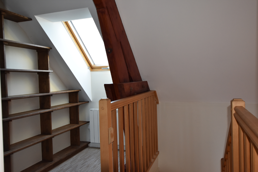 A l'étage, palier, 2 chambres avec rangements, 1 SDB avec WC.