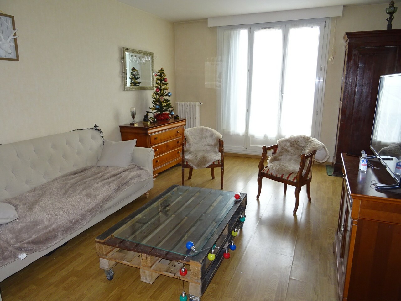 Dans copropriété avec ascenseur, appartement de type 4, comprenant entrée, séjour double, cuisine, sdb, 2 chambres. Cave.