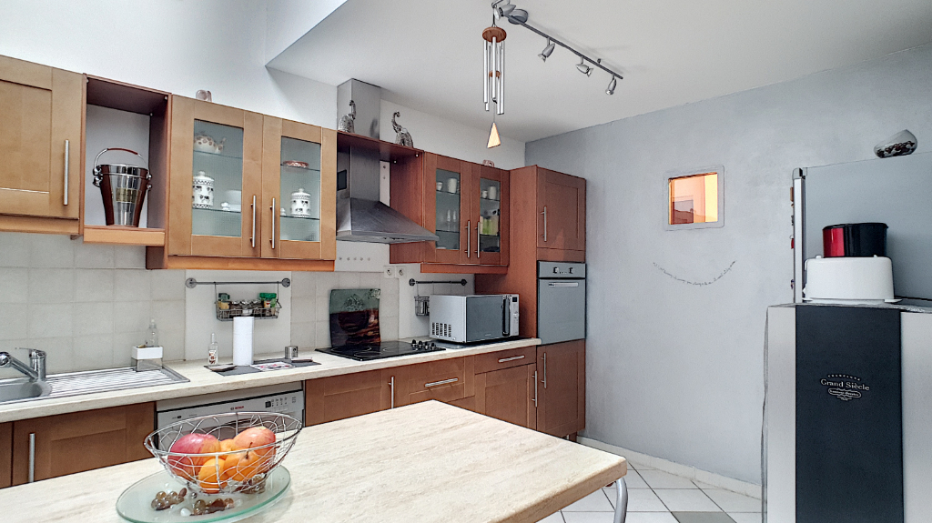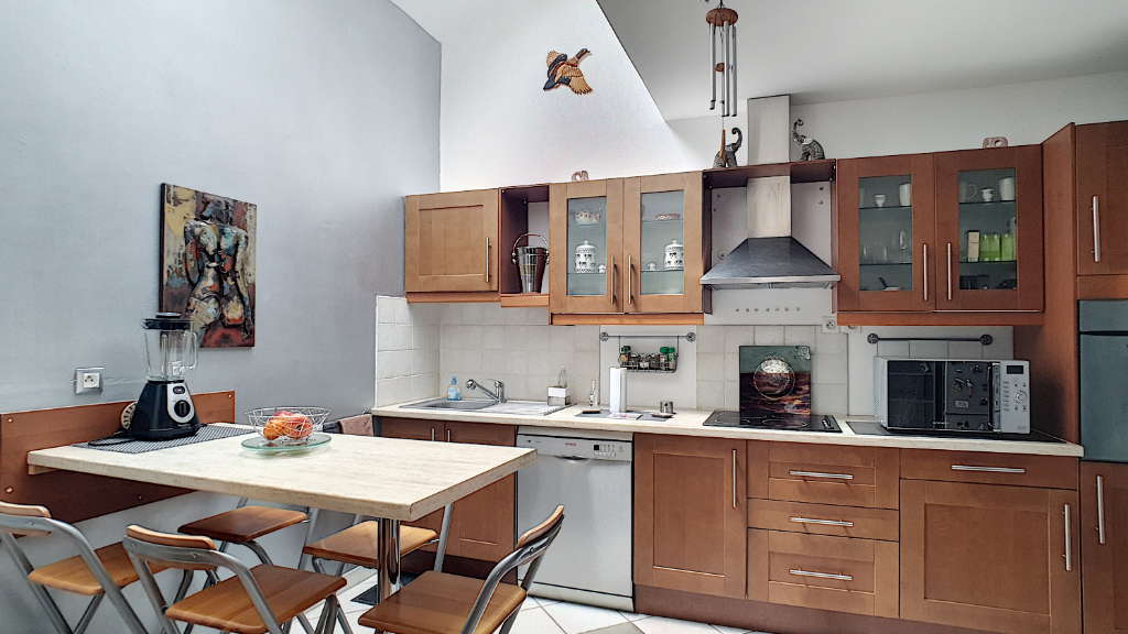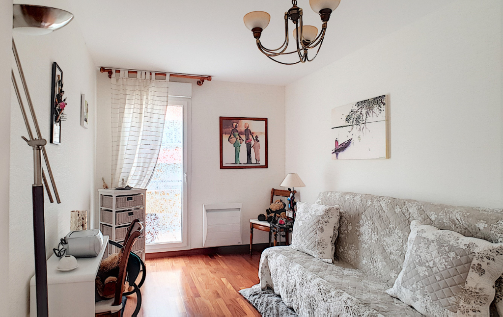 Cet appartement dispose d'une entrée avec placards, un salon/séjour donnant sur la terrasse, cuisine aménagée/équipée ouverte, 2 chambres, salle de bains, wc avec lave-main, terrasse de 10 m². Immeuble situé en fond de cour (4 appartements seulement dans ce bâtiment), sécurisé, 1 er étage sans ascenseur.