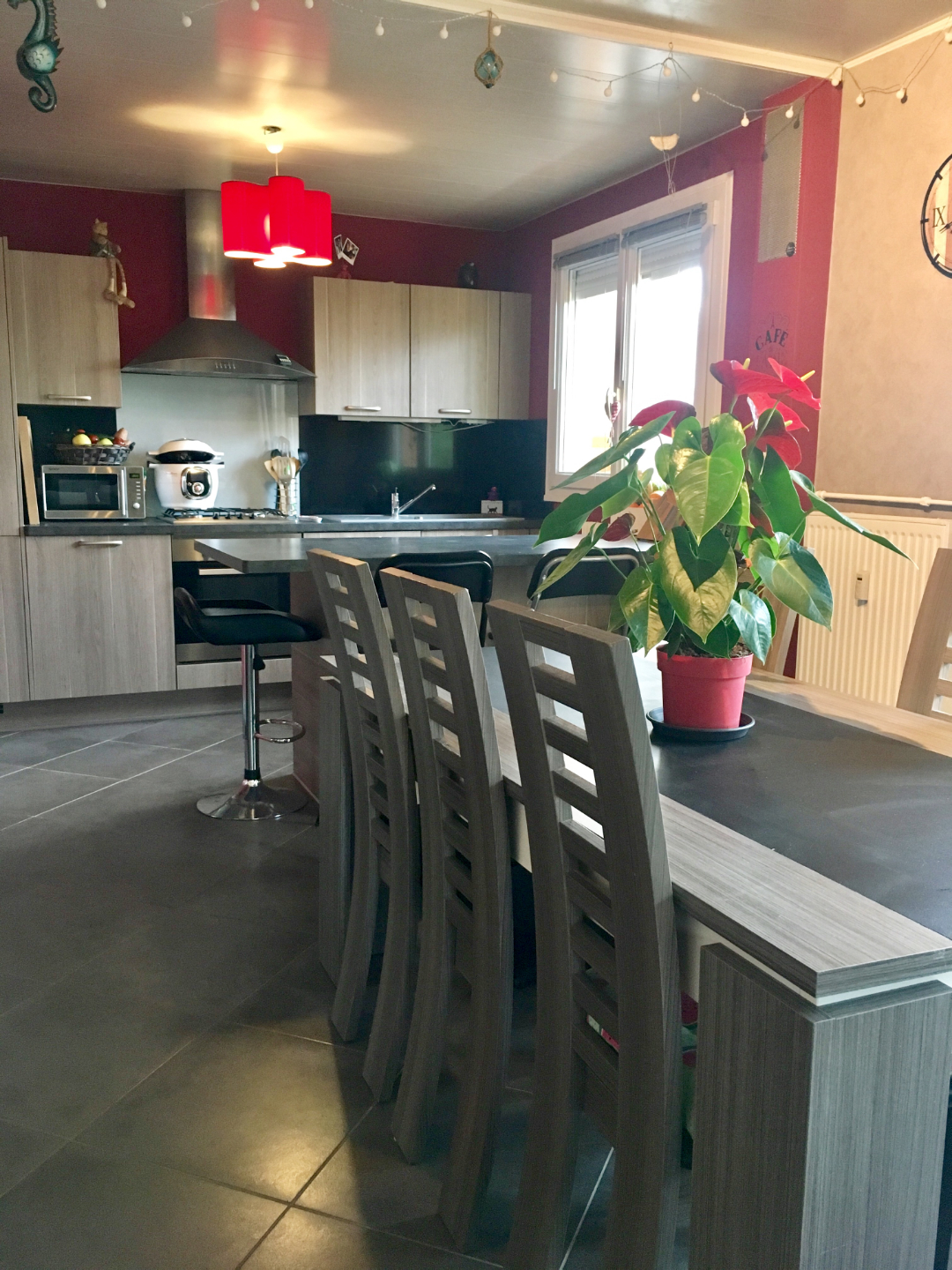 Les prestations sont de qualité : Évier de la cuisine en grès et crédence en quartz noir réalisée par un tailleur de pierre, sèche serviettes, porte blindée Fichet, décoration soignée.