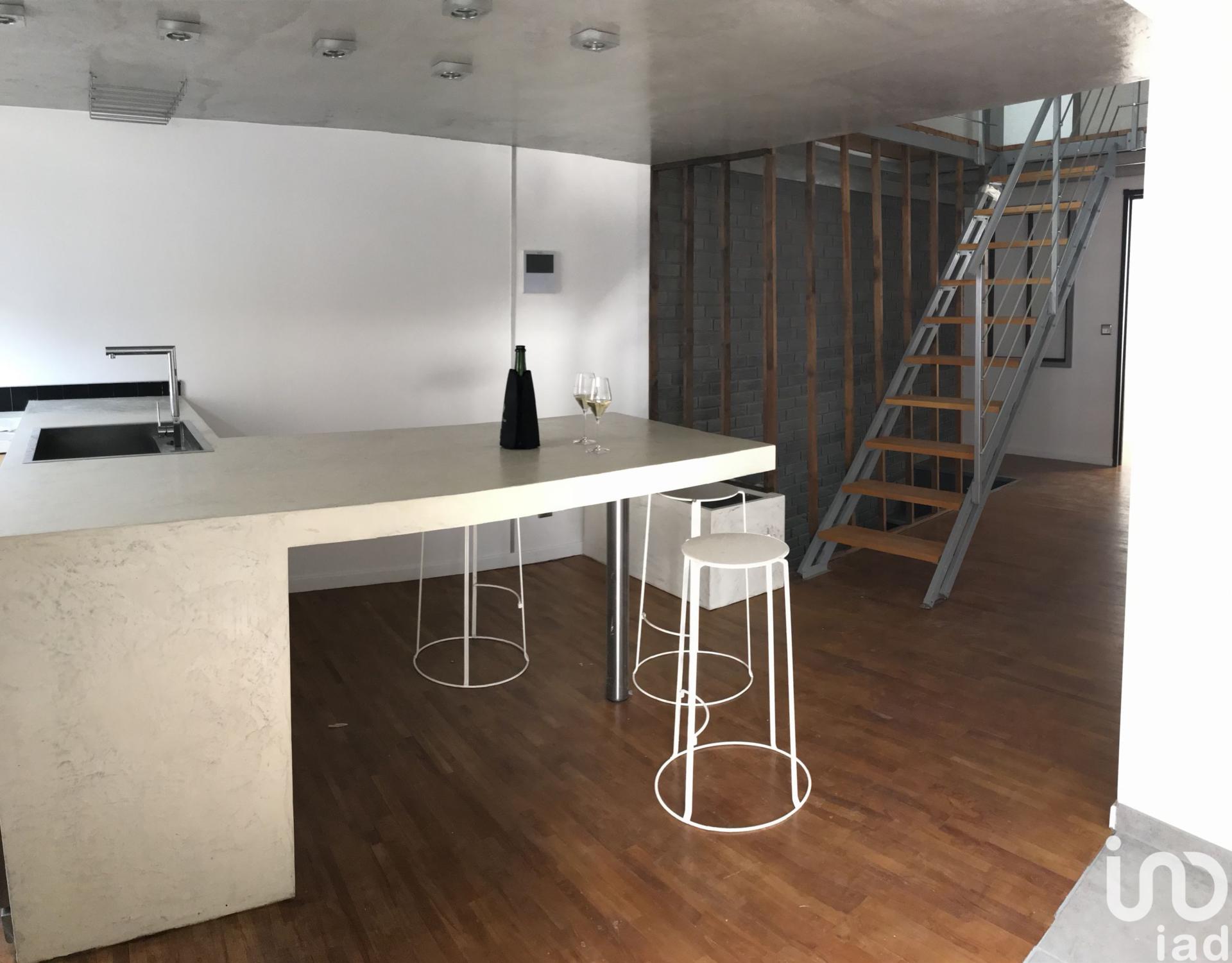 Salon séjour avec cuisine ouverte équipée et aménagée, salle de bain avec douche et vasque. 1 chambre avec dressing, 1 seconde chambre en mezzanine et un bureau.