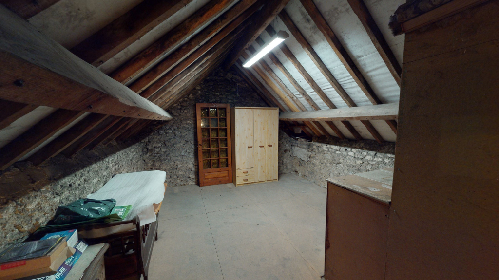 Elle est composée au rez de chaussée d'une entrée desservant une cuisine aménagée, un grand salon séjour avec cheminée, une chambre, un coin bureau et une salle de bain/douche. A l'étage, vous y trouvez un palier avec trois chambres. Elle inclut également un grenier aménageable au 2 ème étage.