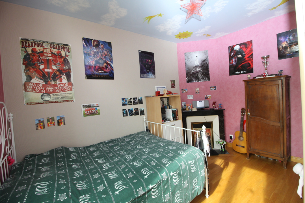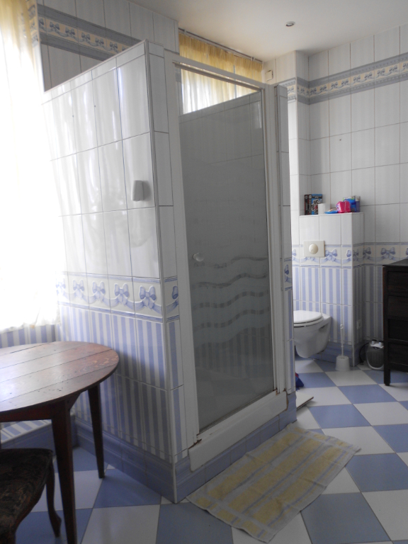 Au premier étage deux chambres, grande salle de bains avec douche, wc.
