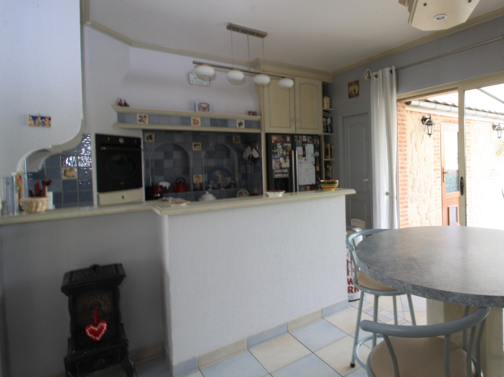 Grande maison comprenant au rez de chaussée salon séjour, grande cuisine ouverte qui donne sur terrasse couverte. Buanderie, wc.