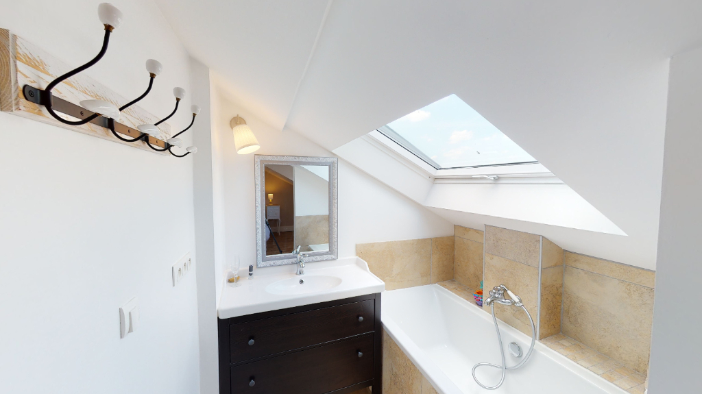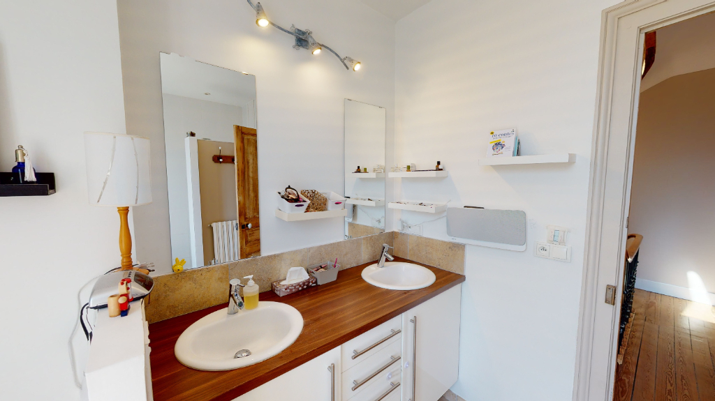 Cette maison est rénovée au gout du jour et possède tout le charme de l'ancien grâce à ses moulures et parquets originaux.