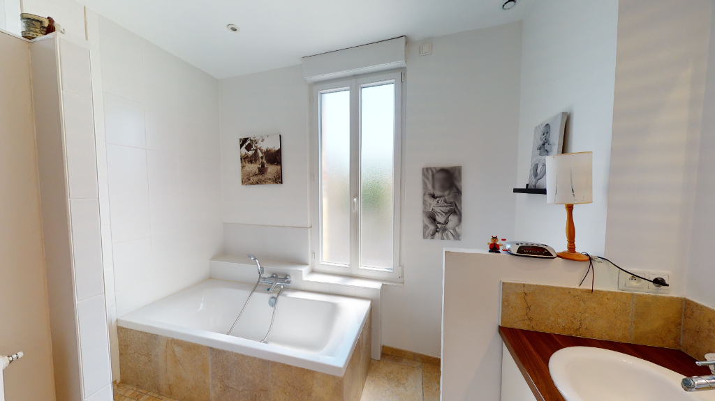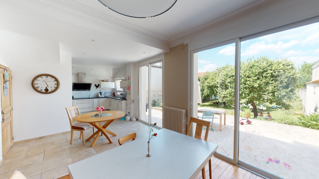 Belle maison de ville avec grand jardin proche des commerces et des commodités offrant une entrée, un grand séjour lumineux donnant sur la terrasse et le jardin, une cuisine moderne et équipée, 4 chambres, 3 salles d'eau dont une avec baignoire, 2 garages, un sous-sol et une cave voûtée.