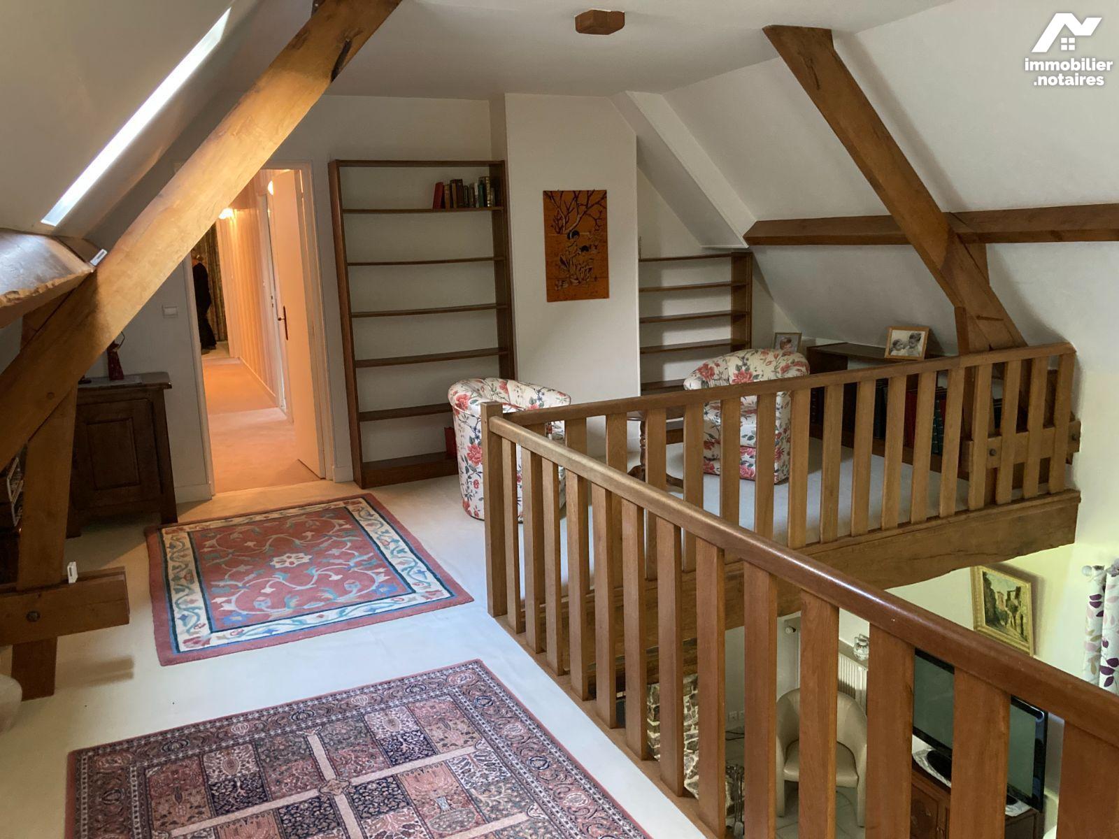 - A l'étage : mezzanine pouvant être transformée en bureau, couloir avec grands placards distribuant 2 chambres, salle de bains, wc séparé.