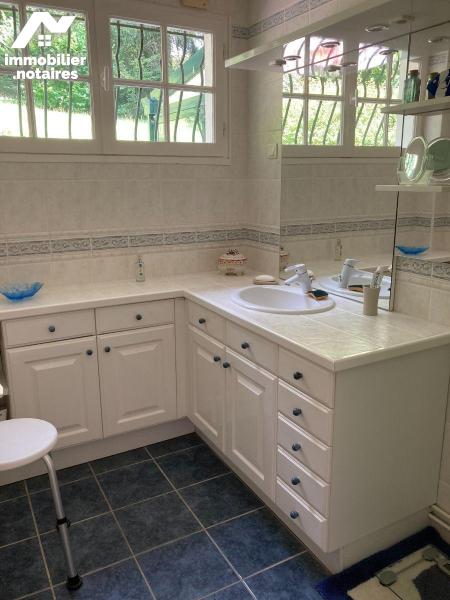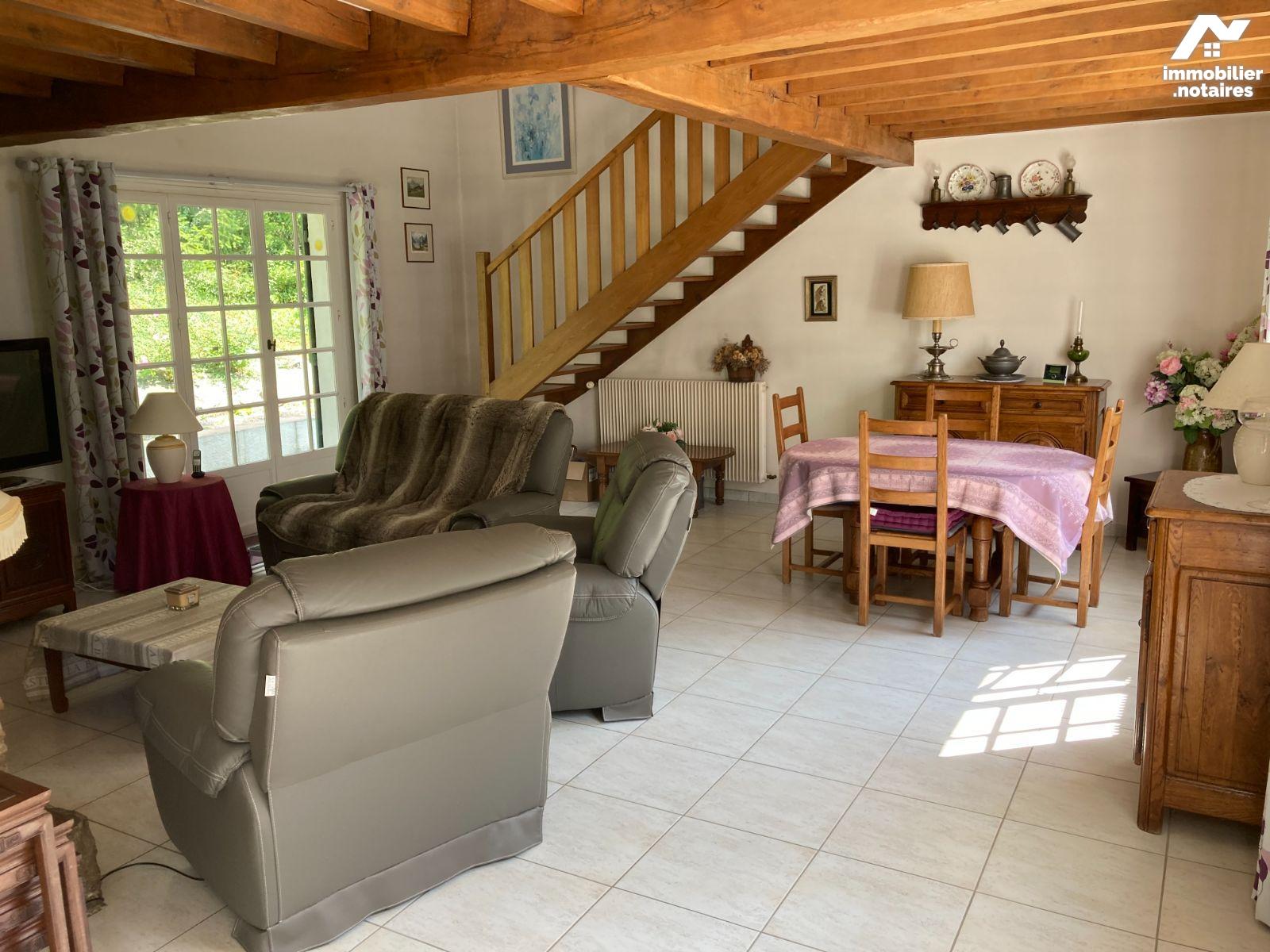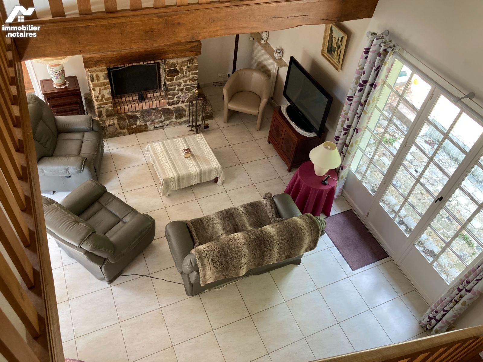 - Au rez-de-chaussée : entrée, séjour double avec cheminée à foyer ouvert, cuisine séparée aménagée / équipée donnant sur véranda chauffée, confort de plain-pied avec 1 chambre, salle d'eau, wc séparé, un bureau.
