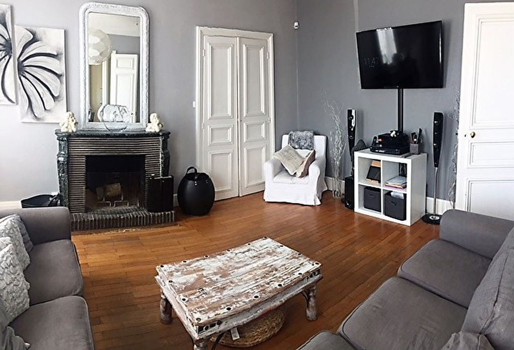 Maison spacieuse et lumineuse comprenant séjour , salon , cuisine équipée et moderne .