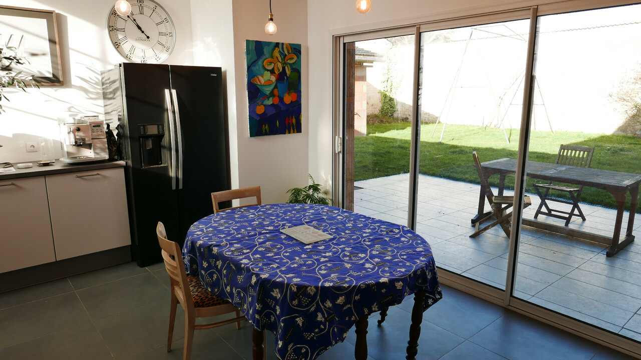 Vaste salon séjour (43 m2 ) avec cheminée insert, cuisine équipée, lingerie, 3 chambres, bureau - salle de jeux, chartil pour plusieurs véhicules - jardin ensoleillé sans vis à vis.