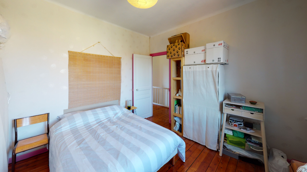 A l'étage, un palier desservant 2 belles chambres dont une avec rangement. Vous y trouverez également un coin bureau.
